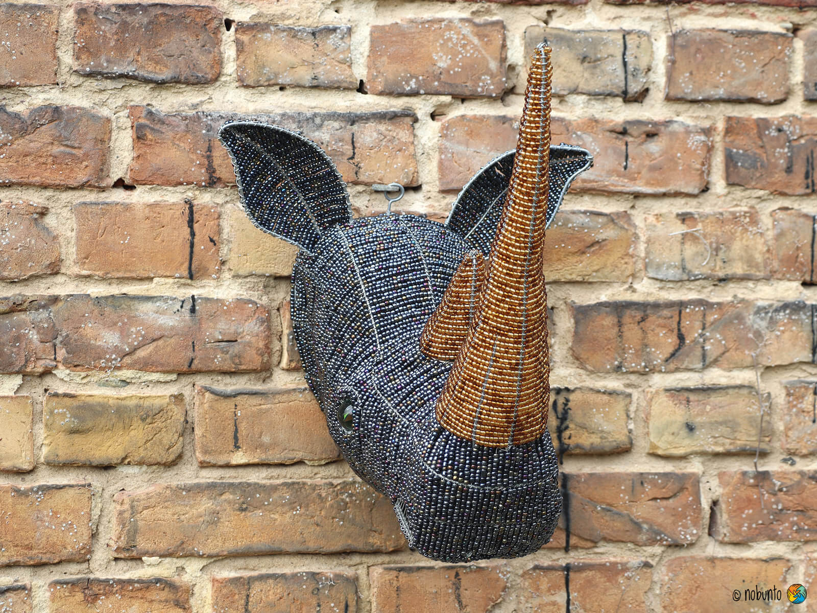 Wand-Deko NASHORN aus Draht & Perlen