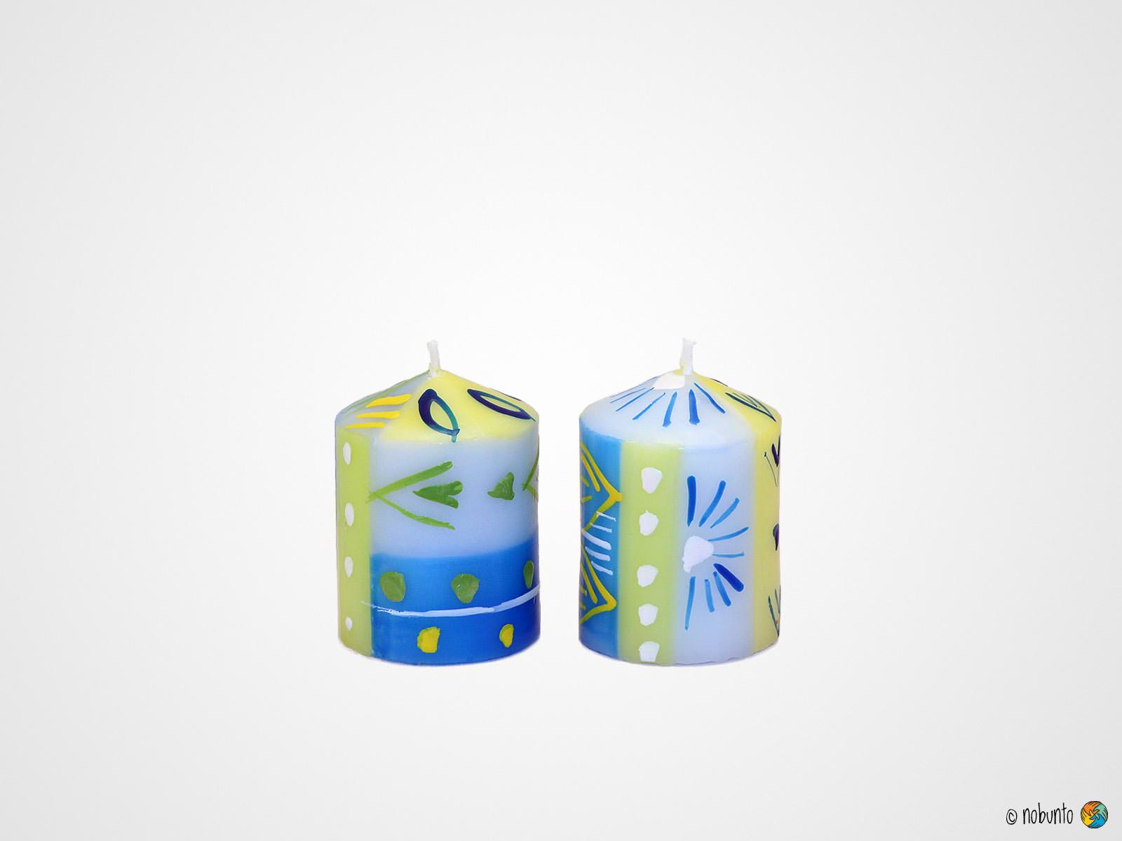 Jede einzelne unserer Kerzen wird in den Nobunto Werkstätten, nahe dem südlichsten Punkt Afrikas, kunstvoll von Hand gefertigt und bemalt. Jede Kerze ist ein kleines Kunstwerk, ein Unikat, denn keine gleicht der anderen. Die Muster jeder Kerze sind individuell , orientieren sich aber am Farbschema. Abweichungen in den Designs, Farben und Formen sind daher mit Freude zu genießen.